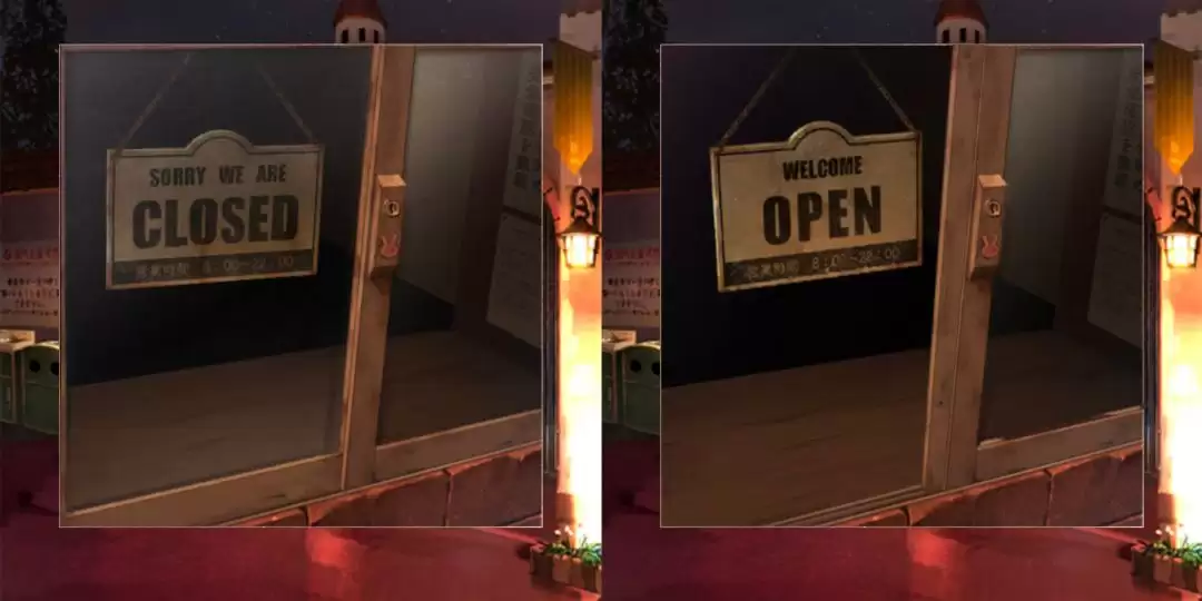 窗边挂着一个牌子,上面写着“CLOSE”。这可不是我们想要的结局。动手,把它翻过来,变成“OPEN”。