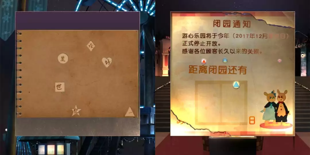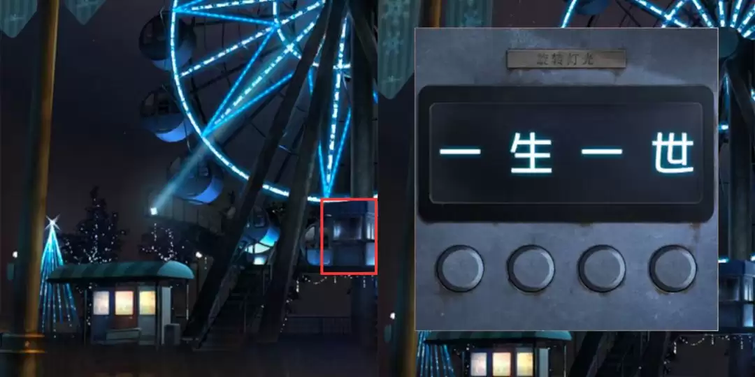 这四个字,就是摩天轮操作室的密码。找到操作室,输入“一生一世”,启动摩天轮。