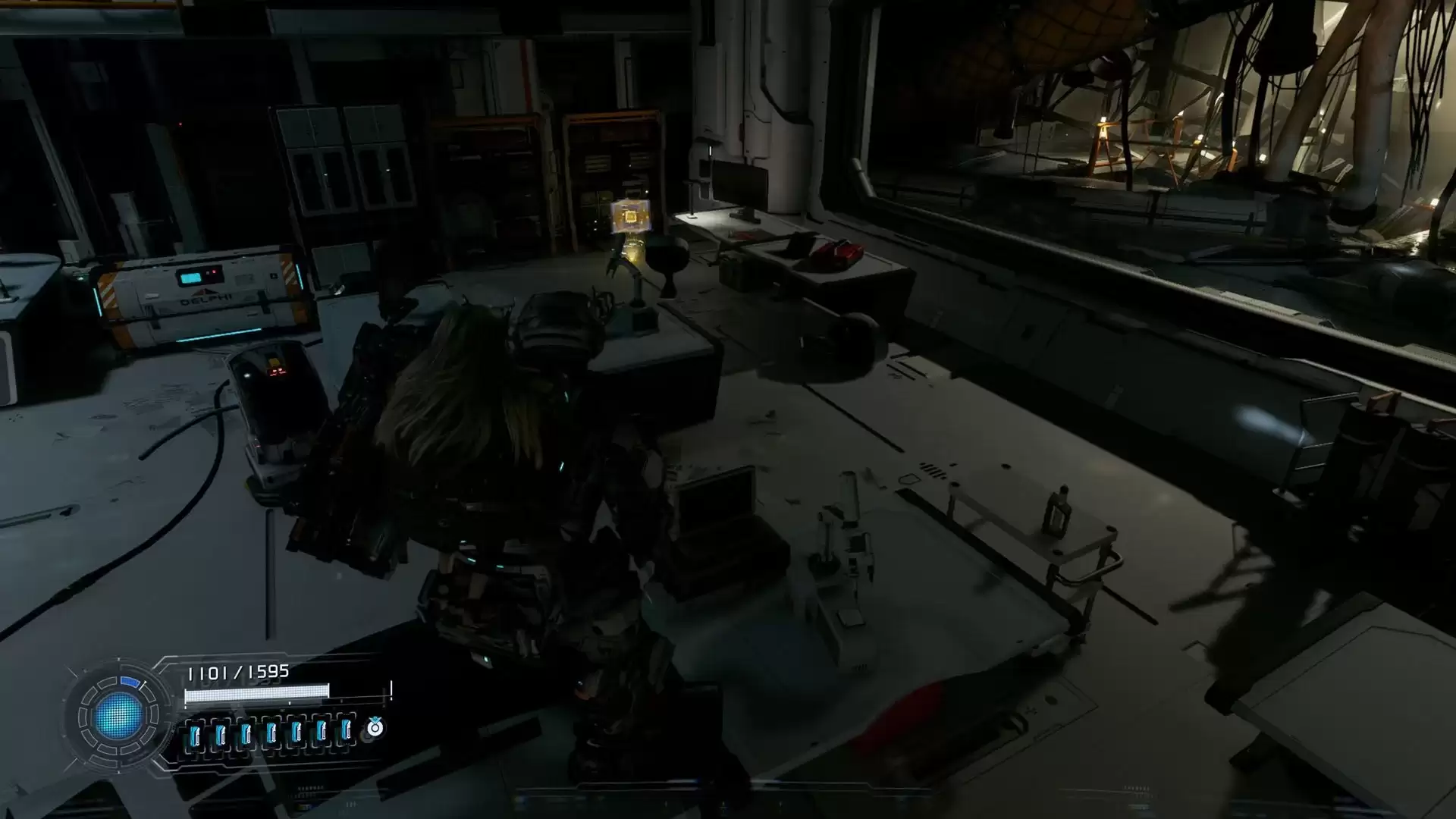 通过货运站的舱门后,需要黑入系统移动平台才能继续前进。穿过该区域后,留意一台打印机单元,组件就在它附近。