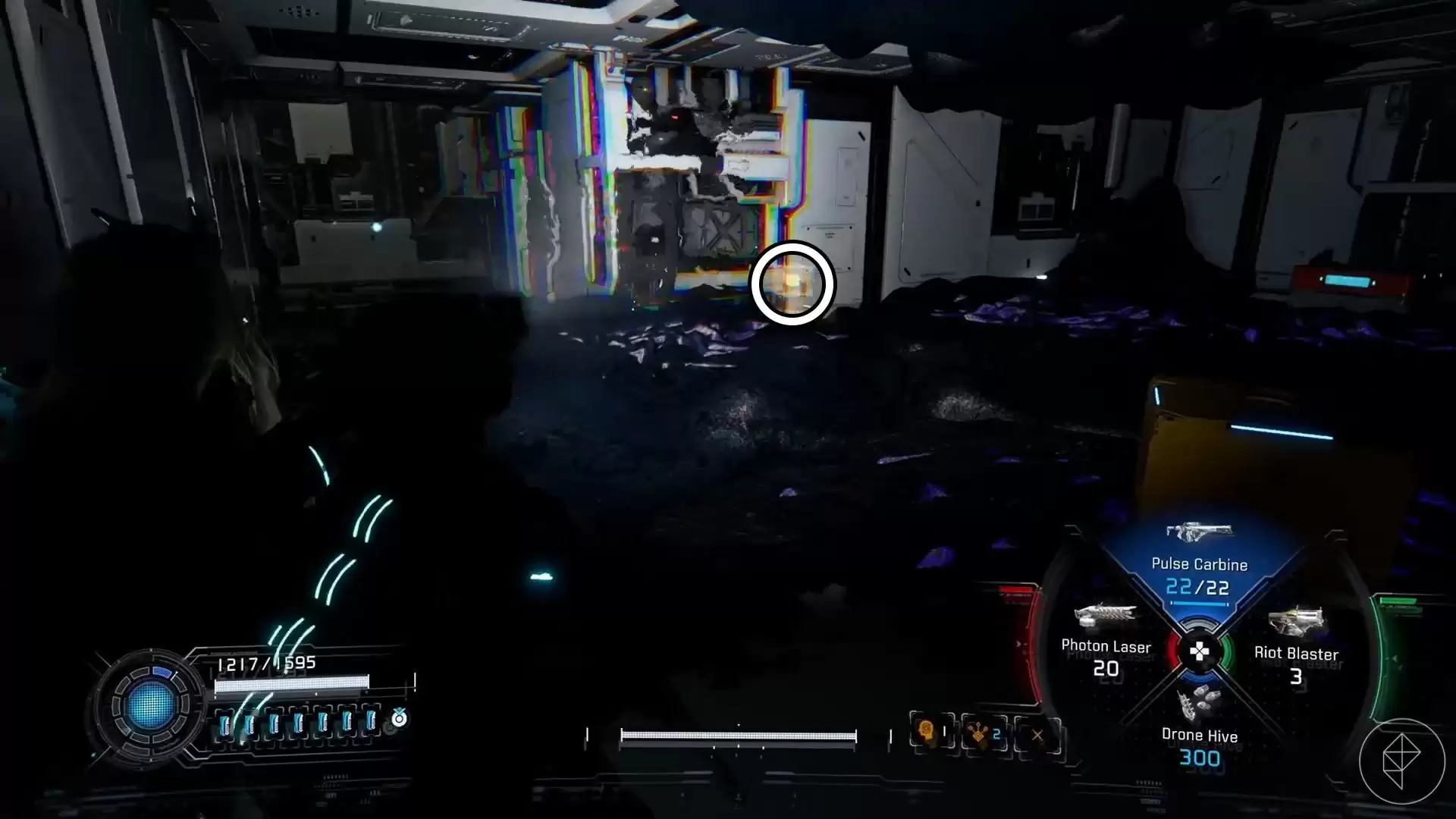 从研究区大厅的舱门出发,爬上右侧的楼梯。沿着路走进一条布满激光的走廊。别怕,走到走廊尽头,奖励就在眼前。
