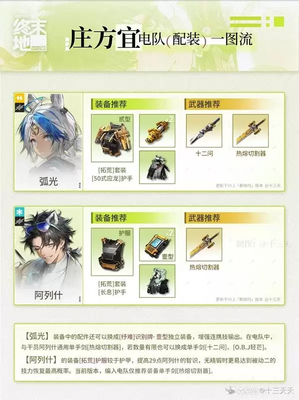 《明日方舟终末地》1.2版本推出的新角色庄方宜,定位是六星电系核心输出。很多玩家拿到手后,最关心的问题自然是:这位强力大C,到底该怎么配队才能发挥最大威力?下面,我们就结合玩家“十三天天”整理的一图流攻略,来详细拆解庄方宜的电系队伍搭配思路。