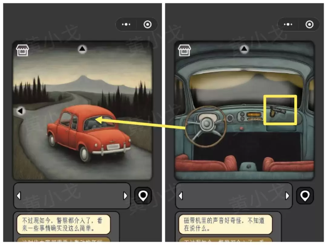 1. 首先,进入场景中的汽车,在车里找到一把【枪】。这可是开局的关键道具。