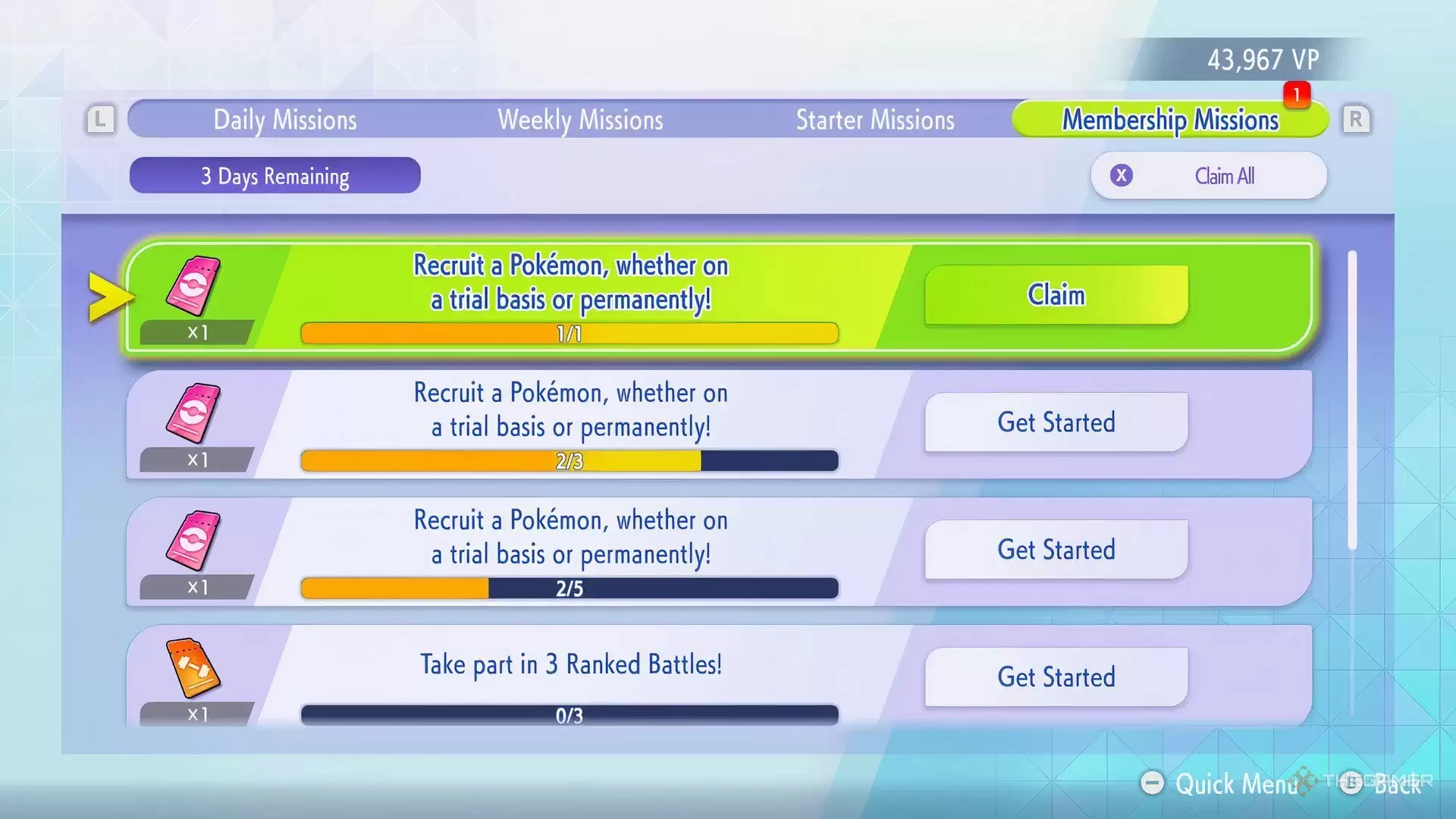不过,名单上的宝可梦可不是白送的。想要永久纳入你的对战队伍,你得“买”下它们。通常这需要花费大约2500 VP,但有一种方法可以让你完全省下这笔开销——那就是使用“队友券”。
