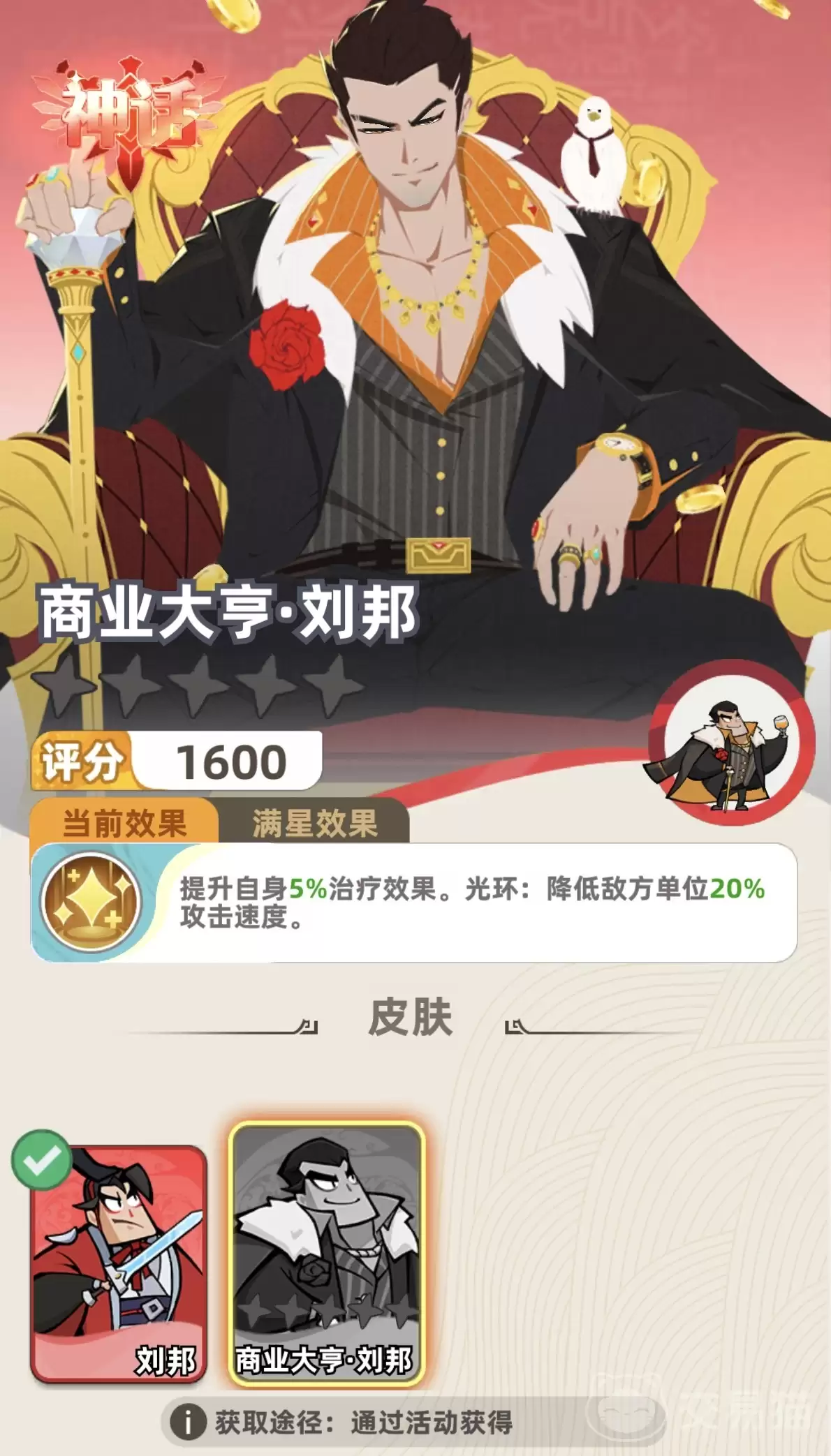 在《王者之弈》的世界里,刘邦这位神话品质英雄,算得上是一张“压箱底”的好牌。想解锁他,需要达到白金三段位,门槛不低,但绝对物有所值。作为帝王职业的核心辅助,他一手包办法术伤害和团队生存强化,是不少主流阵容里公认的“万能插件”。