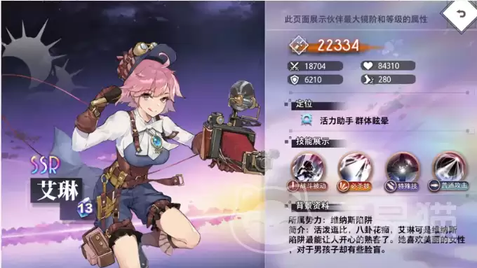 真正让艾琳在进攻端具备战术意义的,是她的必杀技“一个都别跑”。这是一个全体范围攻击,能造成200%攻击力的伤害,并附带20%的基础眩晕概率。关键在于,这个技能每回合至少能稳定触发一次眩晕效果。而当艾琳达到4镜阶时,这个控制能力再次升级,可以确保每回合至少让两名敌人陷入眩晕。这就厉害了,它让艾琳在提供可观AOE伤害的同时,还拥有了非常稳定的群体软控能力,无论是用于压制敌方节奏,还是限制关键目标行动,都非常好用。