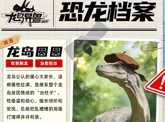 接下来要介绍的,是团队中不可或缺的“智慧核心”——龙岛圆圆。作为一只腕龙,它被所有龙岛居民公认为可靠的“大家长”。虽然性格有点话痨,但正是它维系着整个龙岛的情感纽带,擅长沟通与倾听,最爱收集那些会发光的鹅卵石。在实战中,它的价值更为凸显:能够为整个团队提供持续的治疗效果,显著延长队伍的作战续航能力,是后勤保障的绝对支柱。
