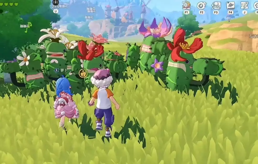 蹦蹦花这次玩出了新花样,拥有短木莲、海神花、象牙花、彩玉花四种形态,每种形态产出的材料各不相同。这里的趣味点在于,你需要跟着它一起跳跃才能触发生产,过程相当魔性。