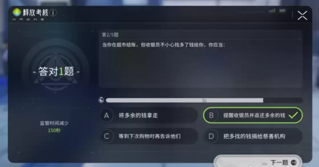 当然,重获自由之路也并非只有枯燥的等待。玩家可以通过完成“释放考核”来缩减监管时间。这可谓是系统里颇具特色的一环:考核内容往往围绕交通法规、社会常识或道德判断展开。比如,系统可能会问你:“当收银员多找了一块钱,应该如何处理?”只有做出符合规范的正确选择或回答,才能有效减少剩余的关押时间。这种寓教于乐的惩罚方式,巧妙缓解了被关押者的挫败感,为“坐牢”时光增添了一抹别样的趣味性。