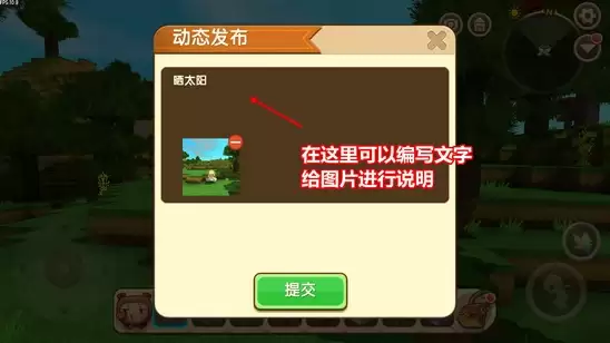 在动态分享界面,你还可以为这张图片配上几句文字说明,让分享更有故事感。一切就绪后,点击提交,你的图片和文字就成功发布到动态中了。
