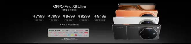 外观上,Find X9 Ultra提供了大地苔原、极地冰川、绒砂峡谷三种充满质感的配色。价格方面,其提供了多个版本:12GB+256GB售价7499元,12GB+512GB售价7999元,16GB+512GB售价8499元,16GB+1TB售价9299元,而16GB+1TB卫星通信版则售价9499元。目前,Find X9 Ultra已在线上线下全渠道开启预定,并将于4月24日上午10点正式开售。