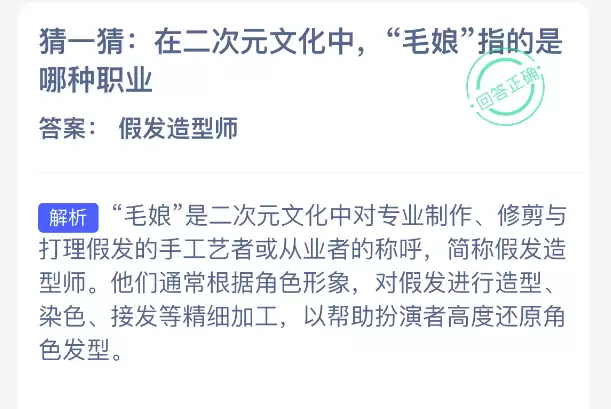 以上便是关于“猜一猜:在二次元文化中,‘毛娘’指的是哪种职业?”的详细解答,即支付宝蚂蚁新村2026年4月22日的最新答案。想获取更多精彩内容,记得关注本站后续更新!