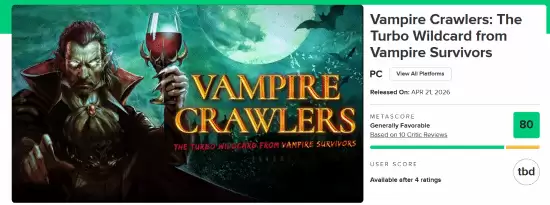 由热门游戏《吸血鬼幸存者》开发商Poncle倾力打造的全新作品《Vampire Crawlers: The Turbo Wildcard from Vampire Survivors》(中文暂译名:吸血鬼爬行者),其首批媒体评测分数已正式解禁。根据权威评分汇总网站Metacritic的数据显示,本作目前获得了80分的媒体平均分,表现相当出色。