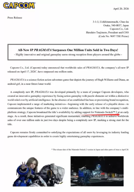 卡普空新作《识质存在》销量破百万,Switch 2成关键引擎