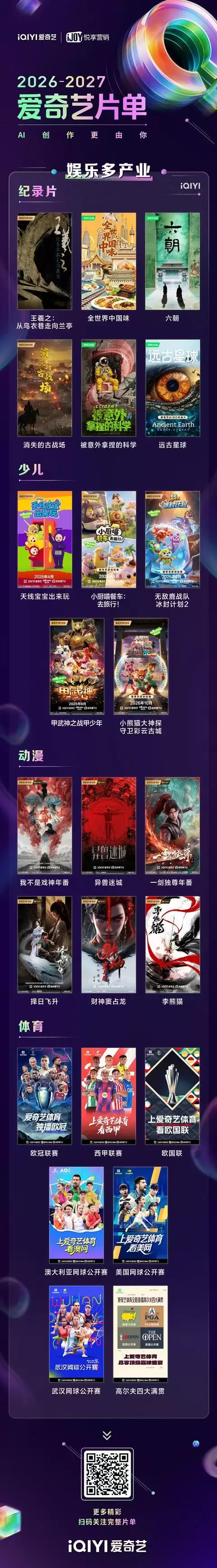 除了剧集和综艺,爱奇艺在动漫、少儿、纪录片、体育等多元娱乐领域同样持续深耕,旨在为用户提供覆盖全场景、一站式的高品质娱乐消费体验。