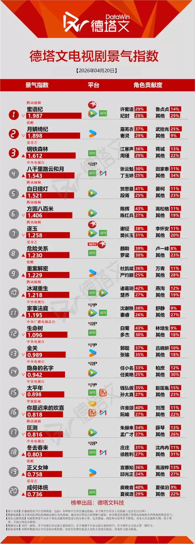 先说一个基本判断:今日市场头部未见景气指数破2的剧集,整体活跃度显得有些平淡。