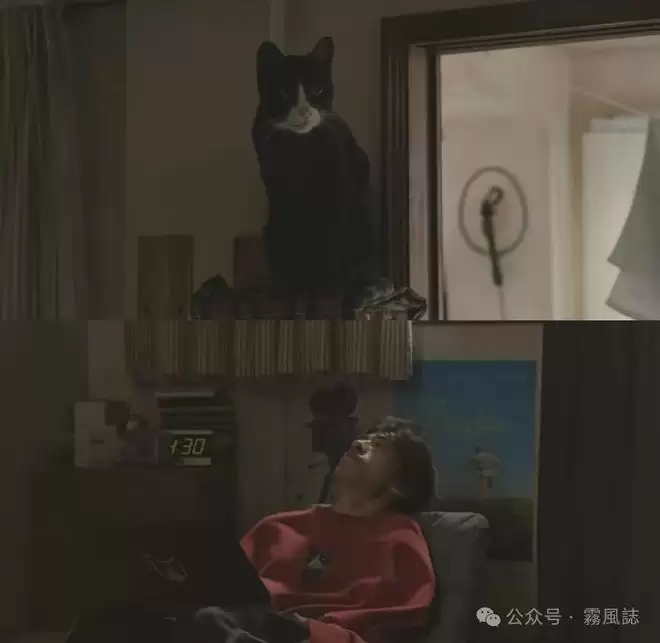 剧中关于男主人设的细节刻画尤其精妙:即便着急出门,也不忘给猫倒粮;衣服和电脑上印着猫猫图案;就连他“发疯”的样子,也让人不禁莞尔——不愧是养奶牛猫的“奶牛人”。