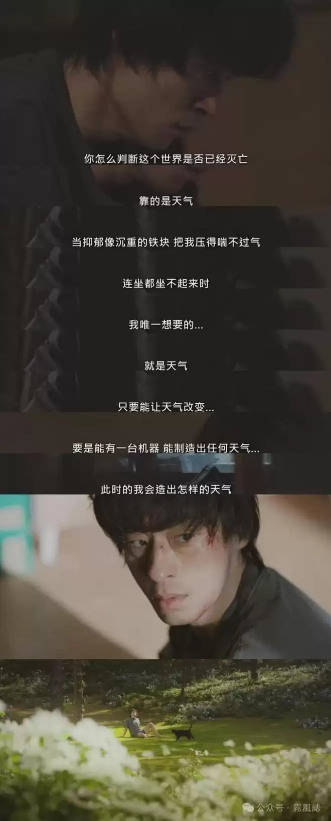 他心心念念想拍的电影剧本《天气师》,讲述在一个天气消失的时代,一位能制造天气的男人,为了将气候重新带回世界而与AI抗争的故事。