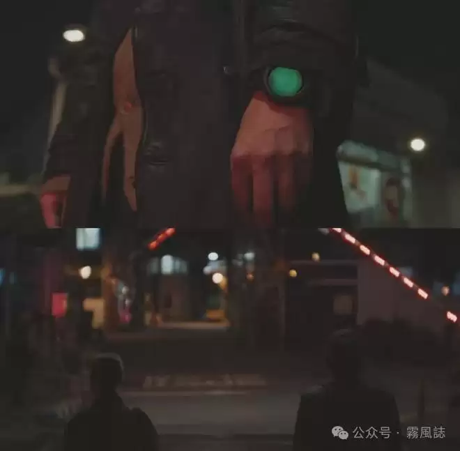 这两种极端的情绪管理模式形成鲜明对照。而当这样两个人在铁路前相遇、简短交谈后,黄东满的情绪手表第一次出现了代表和平与愉悦的绿色。人物的情绪于此得到舒展,与此同时,禁行的栏杆抬起,变为通行——这一画面巧妙地暗示了两人关系未来发展的可能性。