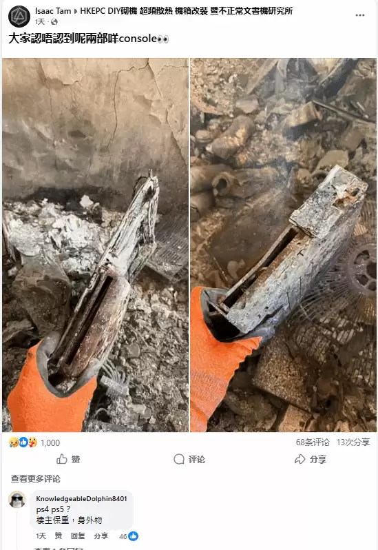 悲剧不止于此。他还晒出了同样葬身火海的PS5,曾经的娱乐中心如今只剩下一具焦黑的躯壳。面对此情此景,网友们的鼓励既暖心又带着玩家特有的幽默:“人平安就是最大的胜利,收拾心情,正好赶上玩《GTA6》。”