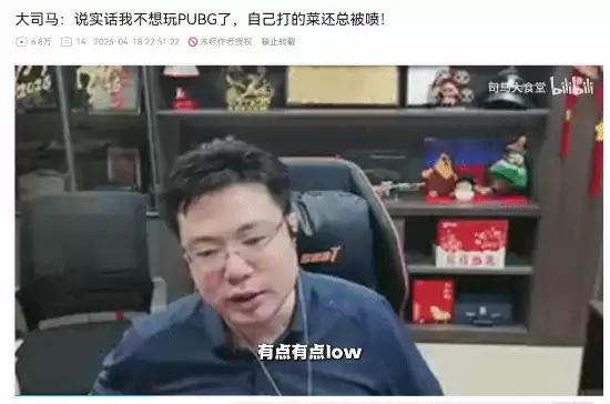 大司马称不想再玩《PUBG》:打的菜还总被喷!
