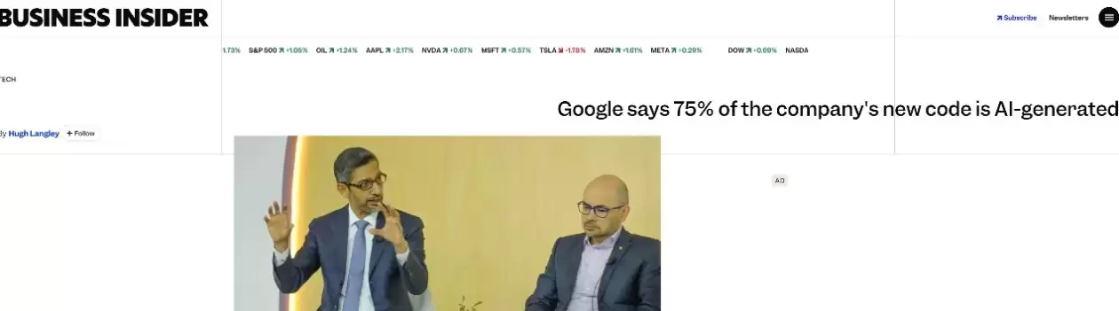谷歌:内部75%新代码由AI生成,工程师转型为审核员