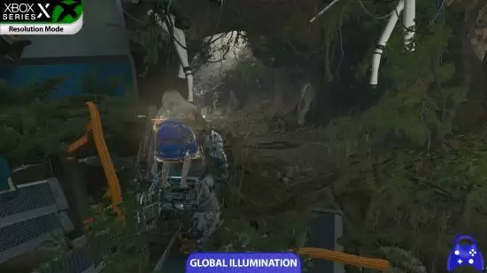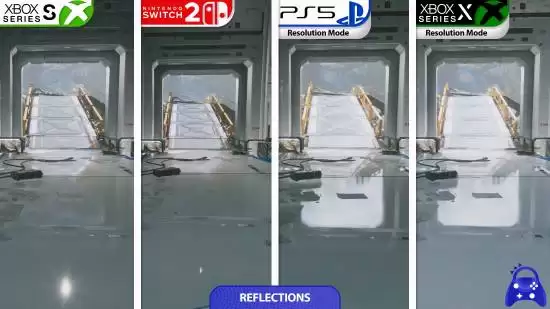 当然,妥协是存在的,主要集中在对硬件要求苛刻的光照和阴影部分。具体来说,与PS5的性能模式对比,Switch 2版缺失了环境光遮蔽(AO)效果,这使得物体接触处的阴影显得不那么自然,画面整体会略显“平淡”。同时,反射效果的处理也相对粗糙一些。
