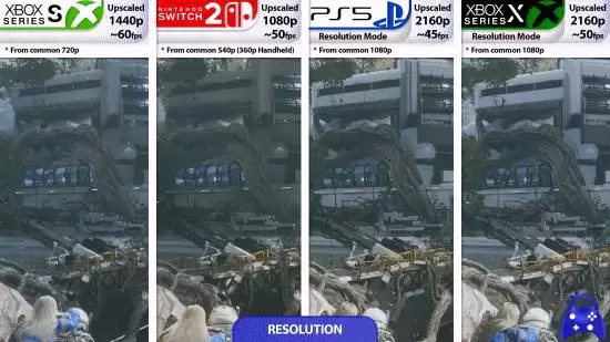 先看最基础的分辨率。数据不会说谎:Switch 2版的原生分辨率,确实要低于Xbox Series S。如果只看这个数字,似乎胜负已分?别急,事情没那么简单。