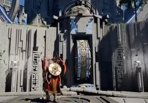 来到上层,挑战尚未结束。首先,继续使用“劲法”抓住场地中央的大转盘外缘,顺时针旋转180度,让转盘上的能量线与上下左右的接口精确对齐。成功时,转盘会发出明显的辉光。