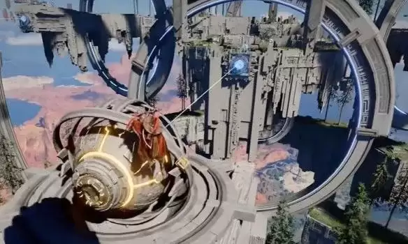 方法二(钩爪电梯):如果你更喜欢机械操控感,可以试试这个。使用钩爪拽出墙上的蓝色能量球,这会触发机关,使一部电梯降下。登上电梯后,松开钩爪让能量球被吸回原位,电梯便会随之上升,将你送至中层。