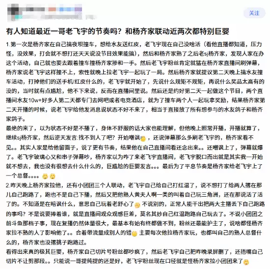 然而,事情似乎没那么简单。随着大量水友和观众爆料,这次退网的导火索,逐渐指向了老飞宇与另一位主播“杨齐家”的两次联动。在这两次合作中,老飞宇一系列被指“极不职业”的操作,彻底点燃了舆论。