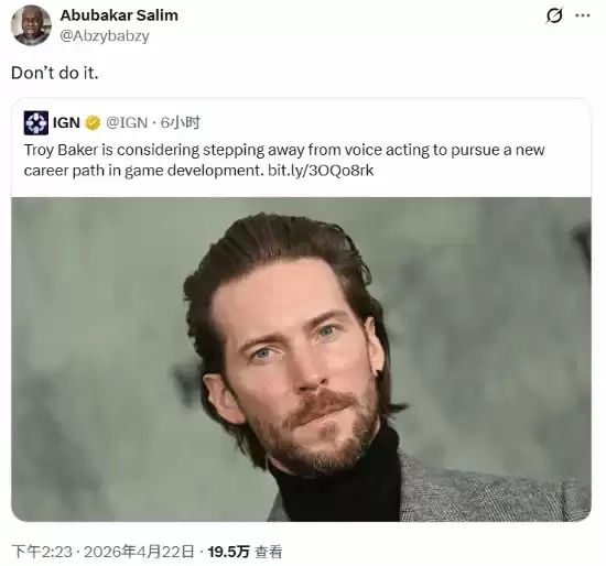 游戏圈里,同行之间互相鼓励、彼此支持是常事。但最近发生的一幕,却有点“反套路”。曾为《刺客信条:起源》主角巴耶克配音的演员阿布巴卡尔·萨利姆,如今还有另一个身份——游戏工作室Surgent Studios的创始人。他旗下的作品,像《肯泽拉传说:扎乌》和口碑不俗的恐怖游戏《遗映》,都证明了他不只是个“配音演员”。然而,当另一位业界大咖、《最后生还者》《死亡搁浅》的知名演员特洛伊·贝克公开表达想自立门户、讲述“自己的故事”时,萨利姆的反应却出人意料。他在推特上直截了当地给出了建议:“别这么做。”