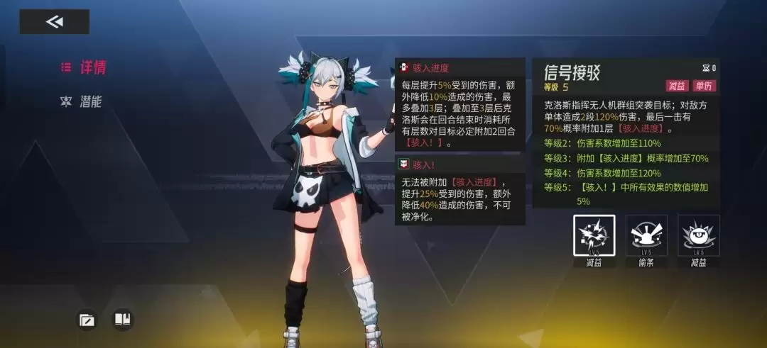 这是一个强力的群体干扰技能。克洛斯对敌方全体造成伤害,并有概率直接附加【骇入】效果。更关键的是,此技能会“偷取”敌方的行动条,并平均分配给所有友方单位。目标身上累积的【骇入进度】或【骇入】状态越多,被偷取的行动条就越多。