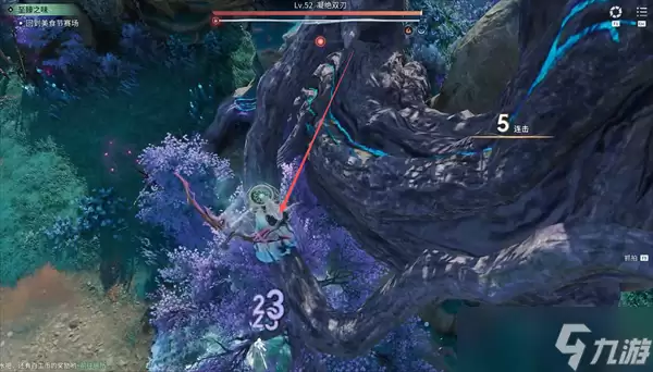 这个BOSS的逃课点,在于一根特定的树藤。找准位置站上去,BOSS的大部分攻击就奈何不了你,轻松达成无伤通关。关键就是找到那个“安全区”。