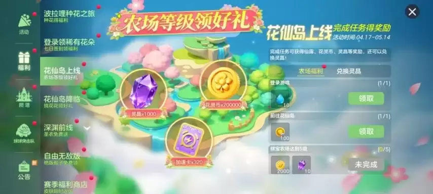 花仙岛上线——农场等级领好礼