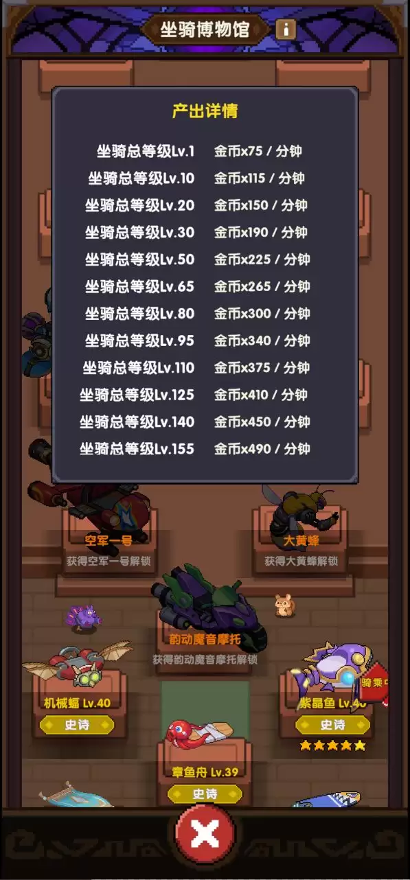 解锁之后,真正的养成乐趣才刚刚开始。你的核心任务之一,就是提升「勇者等级」。每达到一个里程碑,系统都会赠送对应的基础坐骑。当然,想要收集更多酷炫坐骑,还得积极参与各类游戏活动。这里有个关键机制:你所有坐骑的总等级,直接决定了金币挂机收益的高低。收益会持续累积,但上限是8小时,所以别忘了定时上线领取,不然可就浪费了。