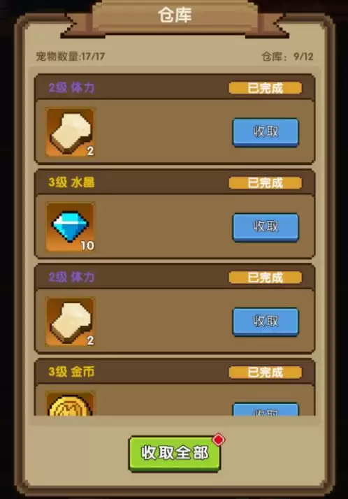 烹饪完成的奖励,会自动存入画面右下角的【仓库】里。初始仓库容量可以储存12次烹饪的奖励。记得时常领取,保持仓库有空位,这样才能让食堂持续运转,不至于卡住。