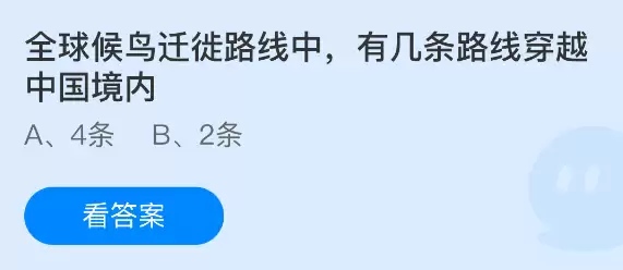 全球候鸟迁徙路线中,有几条路线穿越中国境内?支付宝小鸡课堂今日答案揭晓