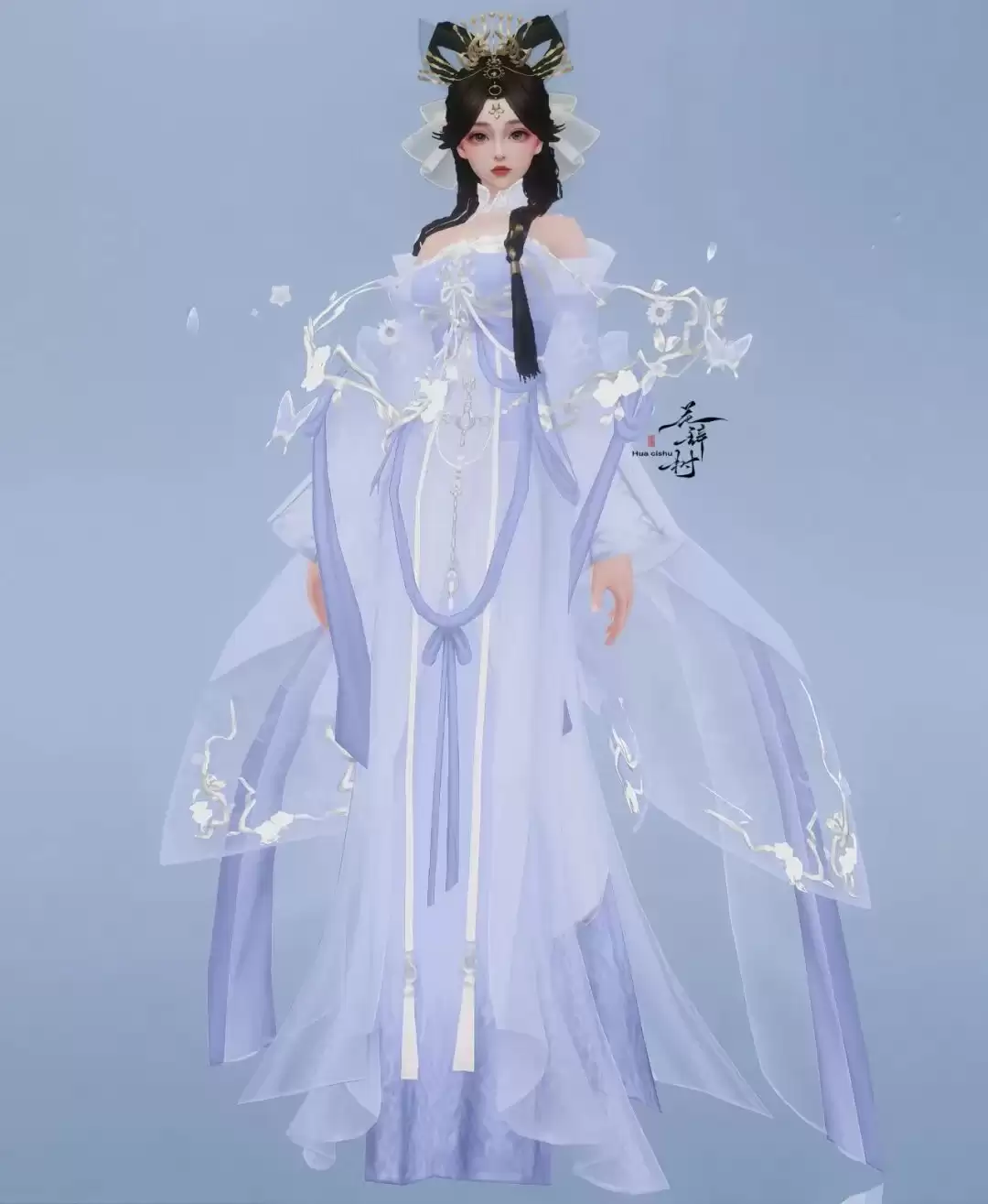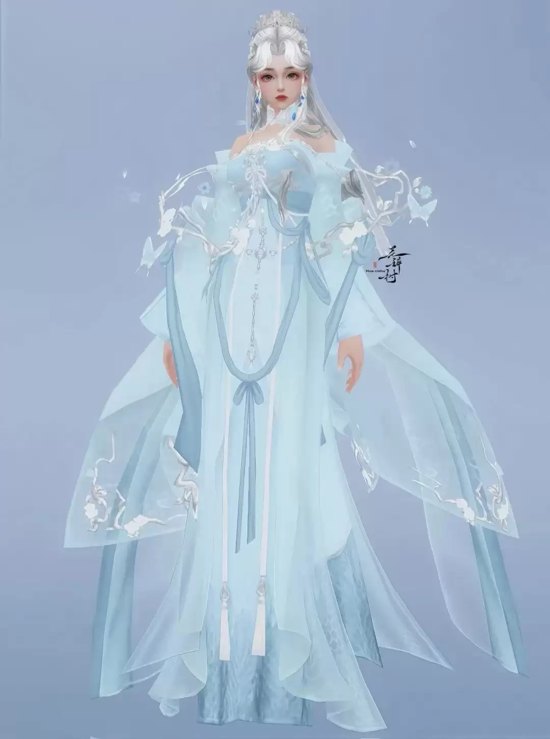 这套蓝色系搭配,宛如将一泓清泉与万&里晴空穿在了身上。色调干净而通透,在光影流转间呈现出细腻的层次感,完美诠释了何为“空灵”。行走间,自带一股清冷出尘的仙气,非常适合追求雅致格调的仙友。