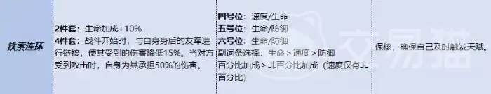 铁锁连环是郭嘉的战术核心。两件套提供10%生命加成,这只是开胃菜。真正质变在于四件套效果:战斗一开始,郭嘉就会自动与后排队友建立连环链接。这意味着什么?队友受到的伤害直接降低15%,而当敌人攻击你的队友时,郭嘉能主动站出来,扛下50%的原始伤害。