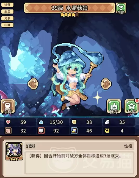 其中,荒漠舞姬是整个体系的核心输出与功能枢纽。她的“闪耀”技能能在行动结束后触发多次追击,并为全体友方附加1层“鼓舞”效果。水晶菇娘的作用同样关键,她的首次攻击命中时,能直接施加3层“泯灭”状态,并同步扩散“鼓舞”效果。而军团统领则扮演着坚实的前排,提供稳定的群体减伤(固定减少8点伤害),虽然反击距离有所缩短,但其作为承伤与战斗节奏调控者的地位无可替代。