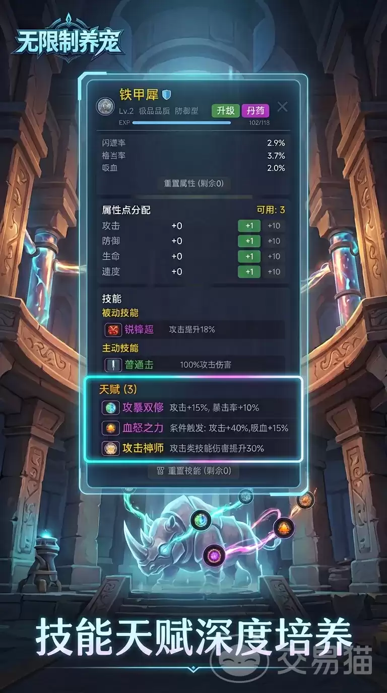 而当战斗打响,策略性布阵的逻辑便凸显出来。常规的思路是,在前排配置高防御型的宠物,用来承担主要伤害,为中后排的输出创造空间。中后排的位置,则安排远程攻击或提供增益、治疗的辅助类单位,从而形成层次分明、攻守兼备的输出梯队。随着你收集的宠物图鉴不断扩充,系统还会解锁对应的成就奖励,形成良性循环。更重要的是,每只宠物都并非定型产品,它们支持天赋重置、属性点自由分配以及技能树的深度定制。这意味着,每一只宠物的战力,都可以被你精准地打磨,以适配不同战斗场景的特定需求。