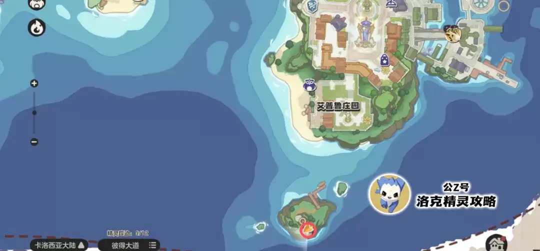寻找这个黑巫师需要一点技巧。首先,使用传送功能前往“彼得大道”的魔力之源。随后召唤你的飞行坐骑,向南方的孤岛飞行。抵达下图所示标记位置,即可发现目标。战胜他后,奖励为:30万洛克贝、50个光水晶和1瓶进化药水。
