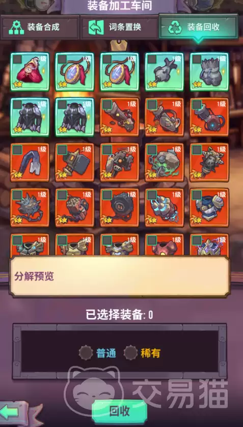 最后是装备回收功能,其作用非常直观。面对仓库中完全闲置的淘汰装备,玩家现在可以直接进行分解,从而换回基础的养成材料,实现资源的循环利用,有效避免资源浪费。