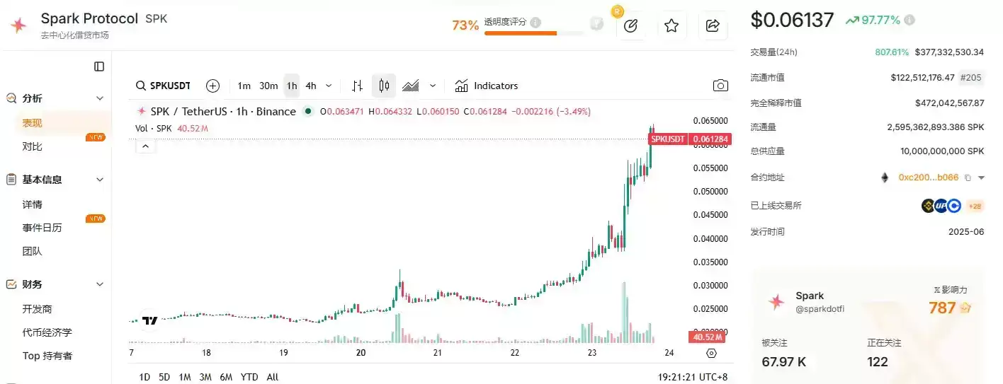 SPK价格在24小时内冲高95%,这背后也不是叙事驱动,而是硬核的链上数据:Spark Sa vings的USDT存款地址在12小时内接收了2.1亿次ERC-20转账,平均每秒4800笔;而同期Aa ve的aETHWETH合约仅处理了173笔赎回请求,其中161笔因流动性不足而失败。