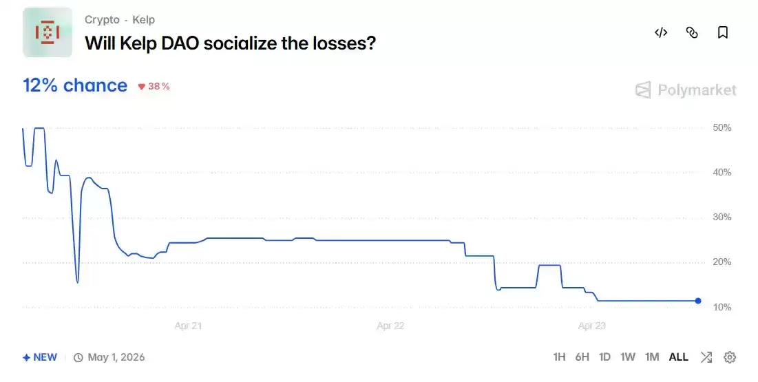 Polymarket上,“Kelp分担损失”的反赌跌至12%,这并非因为市场相信Kelp无辜,而是因为大家看清了一个残酷现实:Kelp的偿付能力取决于未来的质押用金收入,而Aa ve的偿付能力取决于下一秒有没有新的大额存款进来。两者其实都在赌同一个东西——用户是否还愿意继续相信。