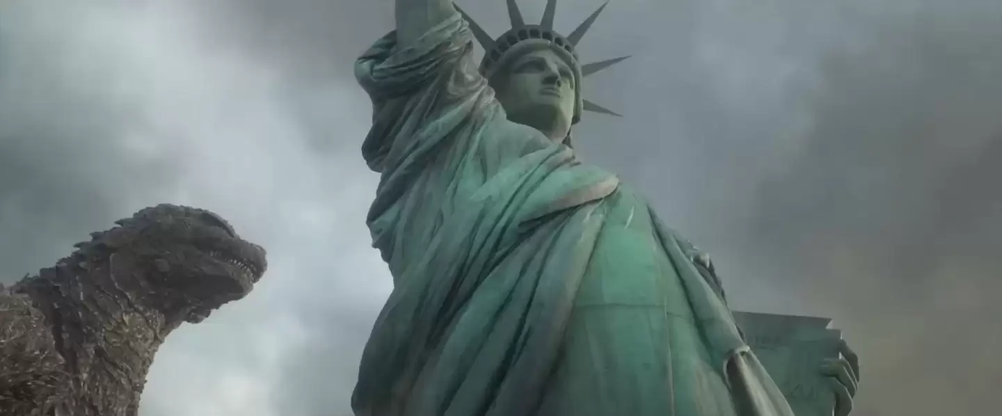 《哥斯拉-1.0》的首支预告片一出,立刻引爆了话题。不过,最让人惊讶的或许不是发生了什么,而是故事将在哪里上演。这部续集的时间线设定在前作的两年后,继续聚焦神风特攻队飞行员敷岛浩一及其家人在东京毁灭后的挣扎。预告片里确实有日本首都的片段,但压轴的镜头,却定格在哥斯拉与自由女神像“同框”的画面。