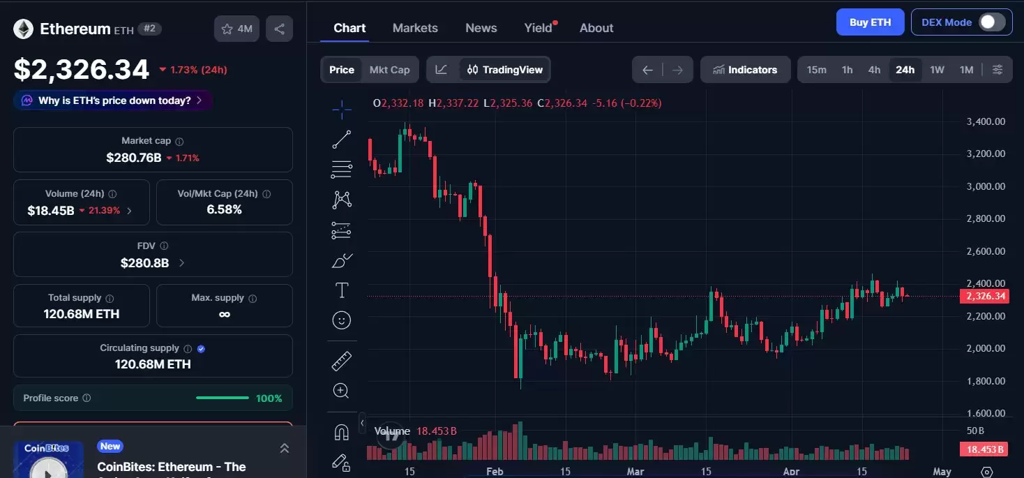 反观以太坊(ETH),走势则略显疲软。其价格现报2,326.34美元,24小时内下跌了1.71%。交易量184.4亿美元,市值2807.4亿美元。以太坊与比特币的走势背离,往往预示着市场资金在不同板块间的轮动。