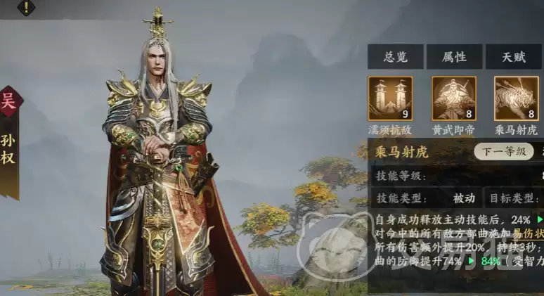 其中,孙权作为主将,其核心战术价值在于施加“易伤”减益状态。该状态能显著提升我方智力最高单位的技能伤害。这里存在一个关键细节:周瑜的智力数值必须严格高于孙权和小乔。唯有如此,他才能稳定成为“易伤”增益的首要受益人,从而彻底引爆其输出潜力。