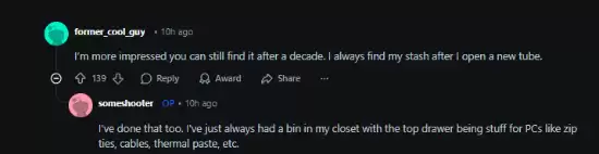 没想到,这个看似普通的分享,瞬间戳中了许多网友的“回忆杀”和共鸣点。评论区里,有玩家留言调侃:“我那管大概是2005年买的,现在还剩三分之一没用完呢。” 好家伙,这都快成“传家宝”级别的电脑配件了。