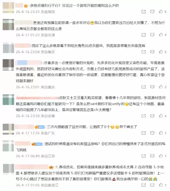 而一些参与过内测的老玩家则感到愤愤不平,留言道:“内测提了那么多建议,几年死活不改,非得堆到公测挨骂才动?”这种情绪背后,是长期反馈未被重视的累积失望。